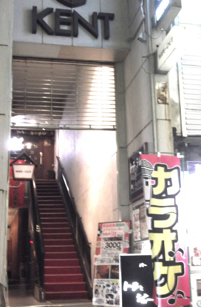 長い赤階段が印象的なBarでちょっと、目をひきます。