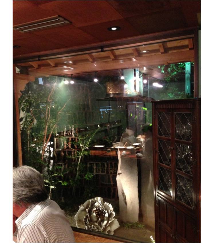 決して広い空間ではありませんが、幾つかのオブジェがライトアップされていてセンスの良い中庭です。