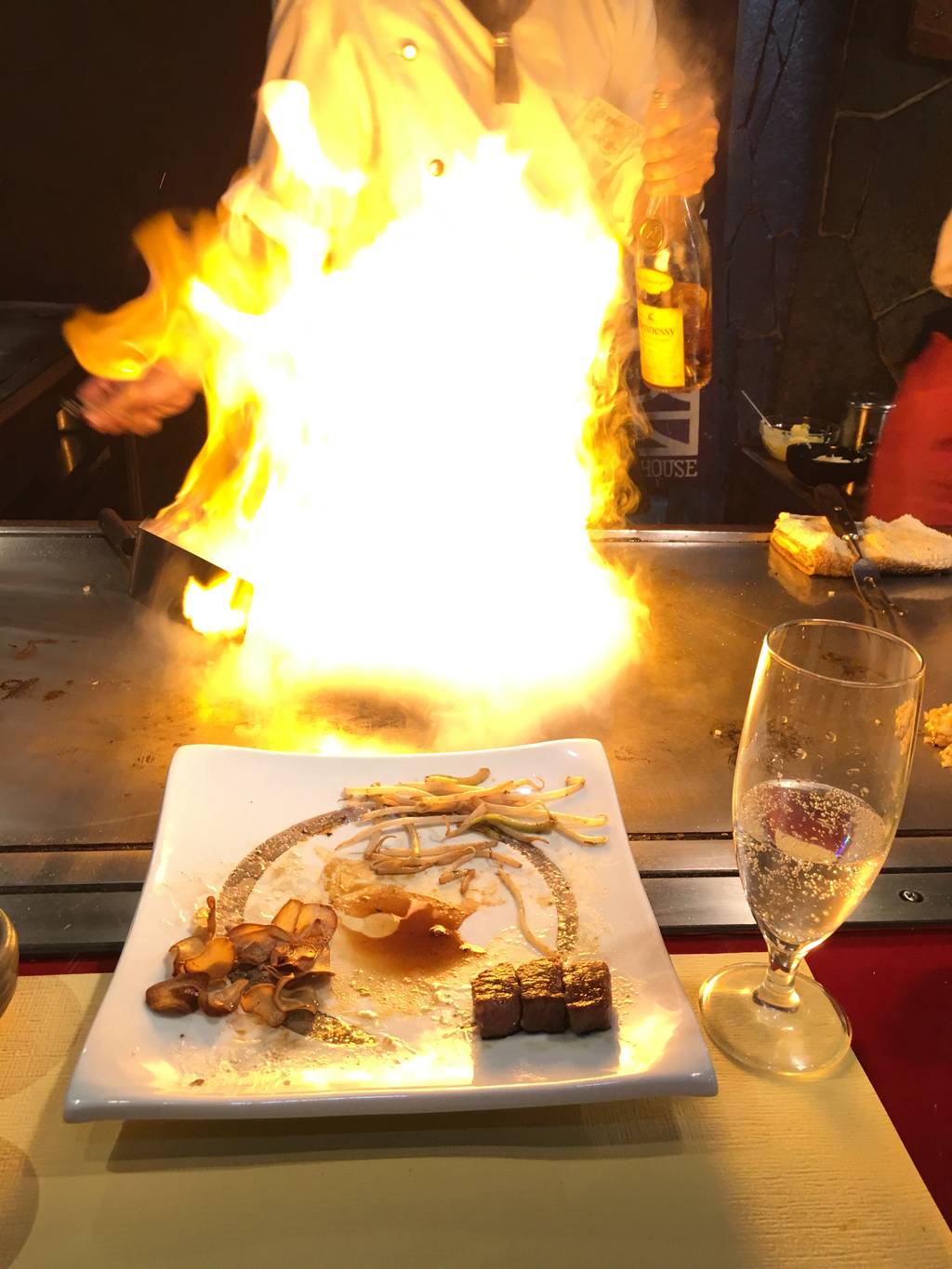 目の前で見れるパフォーマンスが楽しい。新地でもパフォーマンスしてるけど、同じレベルなら、こっちの方がコスパが断然いいと思う。ガーリックライスは、また食べたくなるので、仕事じゃなけりゃ、いつも頼みます!駐車場もあるから、気軽に行けるし、誕生日なら、盛り上げてくれるので、大勢でも、少人数でも楽しめるステーキ屋です。