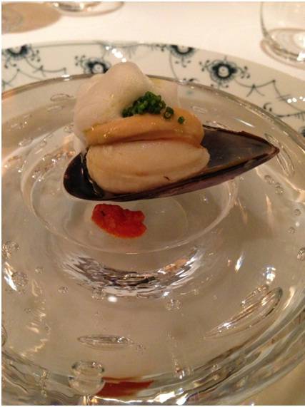 蒸したムール貝にムール貝のムースが掛かった一品。ムール貝の柔らかさと味の繊細さもさることながら、貝の旨みが閉じ込められたムースが絶品。このムースに手前に配されたマリナーラソースを合わせると、一口だけでもムール貝、トマト、ニンニク、オリーブ等のふくよかな香りが複雑に絡み合い口いっぱいに広がる。いつまでも食べていたいと思わせる一皿であった。