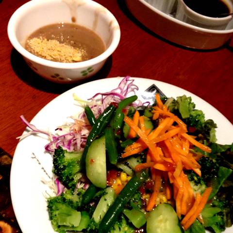 ランチセットを頼むとサラダと豆シチューが食べ放題!780円でこれは嬉しい!値段には幅があります。