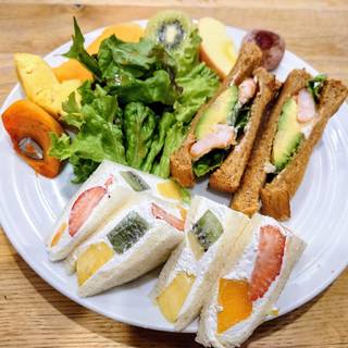 "週末限定メニュー"の"ランチプレート"が気になったので思わずオーダー リーベルさんならではの"フルーツ"をふんだんに使った"フルーツサンド"は 甘すぎない生クリームとたっぷりのフルーツの相性ば…